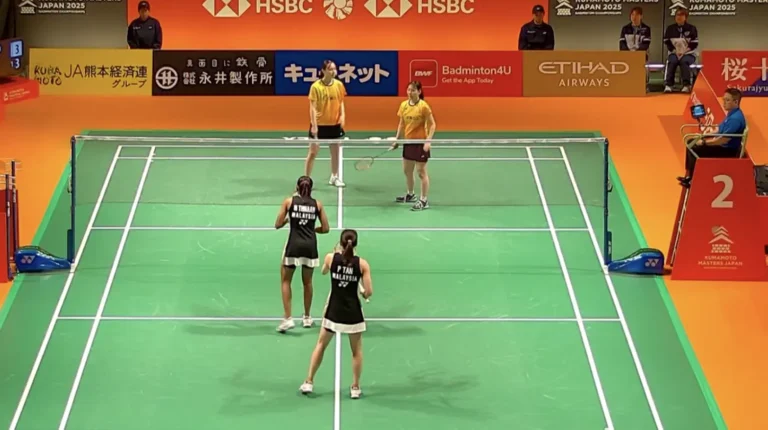 Pasangan beregu wanita negara, Pearly Tan dan M. Thinaah, membuka langkah penuh dramatik di pusingan pertama Kejohanan Kumamoto Masters Jepun 2025 apabila berjaya menundukkan wakil tuan rumah, Mikoto Aiso dan Momoka Niimi, dalam aksi tiga set yang mendebarkan. Kejohanan bertaraf Super 500 dengan jumlah hadiah keseluruhan bernilai USD475,000 itu menyaksikan detik penuh emosi apabila pasangan Malaysia berjuang habis-habisan untuk memastikan tiket ke pusingan kedua menjadi milik mereka.