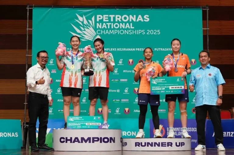 Bekas pemain kebangsaan, Lee Xin Jie dan Low Yeen Yuan, menampilkan kebangkitan berkualiti tinggi untuk muncul juara beregu wanita Kejohanan Badminton Kebangsaan 2025 selepas menamatkan saingan final penuh tekanan di Dewan Badminton Kompleks Kejiranan Presint 11, hari ini. Pasangan pilihan kedua itu menewaskan gandingan remaja Persatuan Badminton Malaysia (BAM), Low Zi Yu dan Nur Aina Maisarah Hatta, dengan keputusan 17-21, 21-18, 21-12 bagi mengesahkan kejuaraan yang dianggap amat signifikan terhadap perjalanan kerjaya mereka.